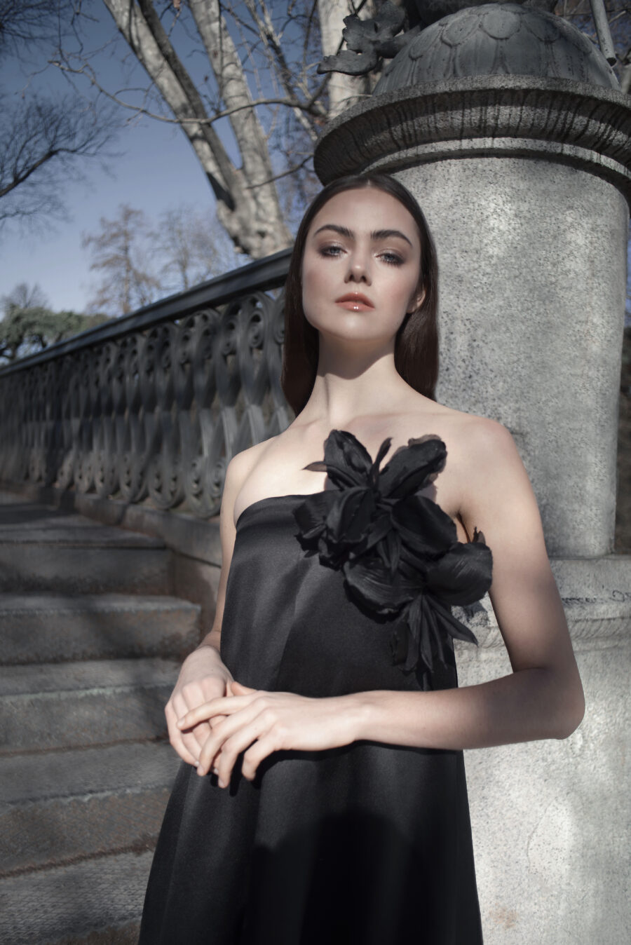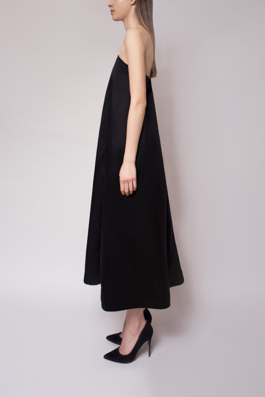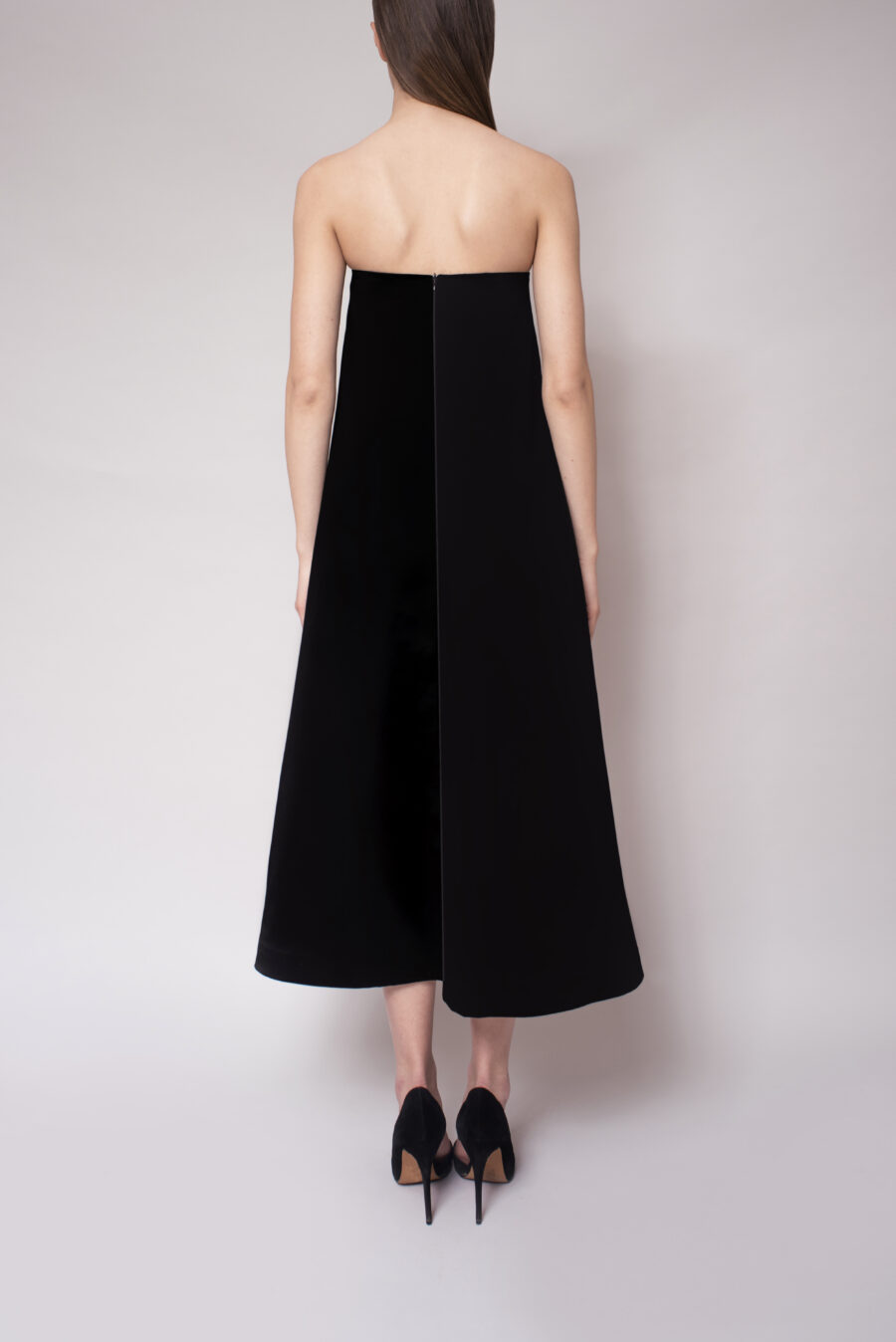 Overtly femenine yet sleek, our Iris Dress is our take on the classic shift dress. Features an iris flowers brooch, strapless design and midi length cut.