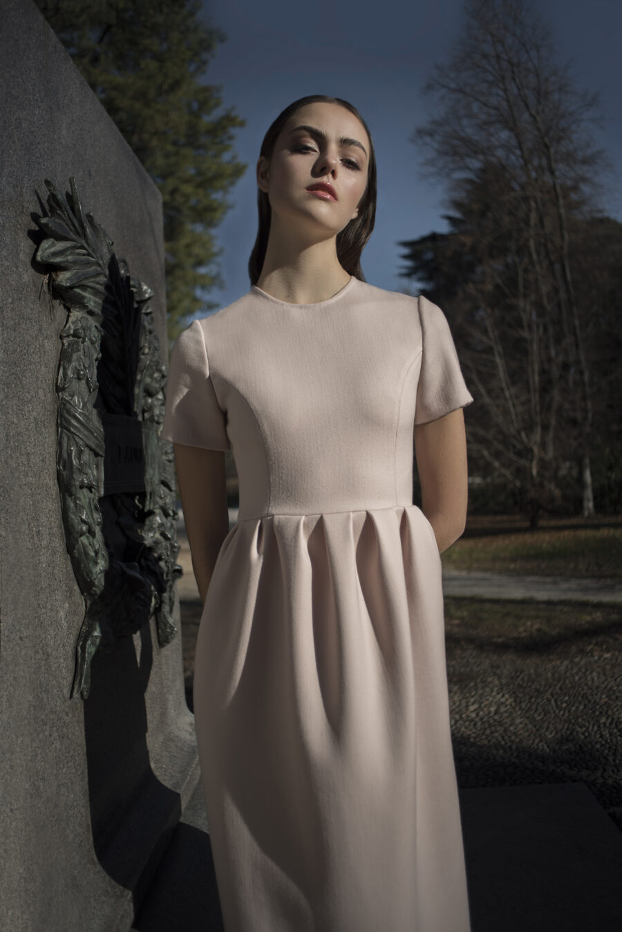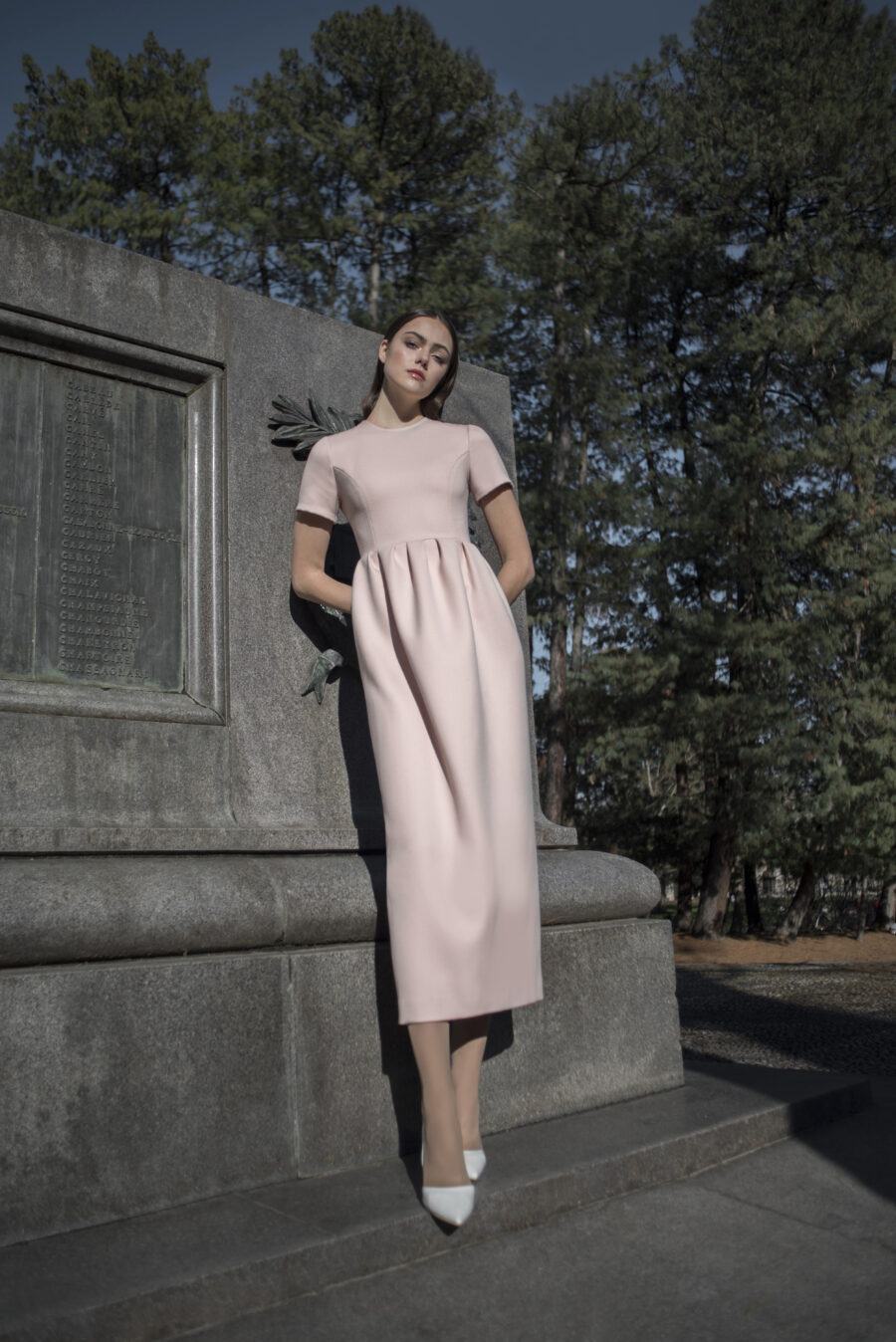- Elegance, romanticism and simplicity… the fundamentals in our Nerine Dress in Crystal Pink. Made with short sleeves, mid-calf length and hidden pockets. - Composition: